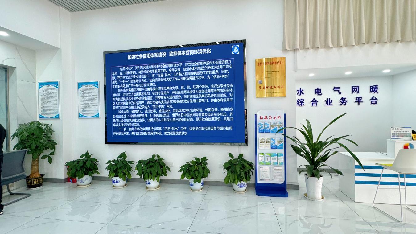 隨州水務(wù)集團(tuán)結(jié)合“世界水日”“中國水周”等重要節(jié)點(diǎn),開展一系列供水誠信服務(wù)進(jìn)社區(qū)宣傳活動(dòng),通過“水電氣”共享營業(yè)廳屏幕滾動(dòng)播放宣傳視頻,還利用“隨州水務(wù)”微信公眾號(hào)、官方網(wǎng)站和新媒體平臺(tái)等各類宣傳途徑,宣傳供水信用服務(wù)體系建設(shè),為推動(dòng)供水信用體系建設(shè)落地落實(shí)打下堅(jiān)實(shí)基礎(chǔ)。