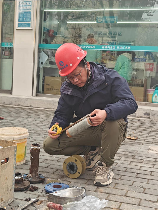 2025年7月,又一嚴(yán)峻考驗(yàn)降臨,交通大道兩水段突發(fā)區(qū)域性停水。故障就是沖鋒號,劉吉再次主動請纓,率隊(duì)緊急出動,戶外溫度直逼40攝氏度。頂著烈日,劉吉帶領(lǐng)隊(duì)員們,沿著疑似管線段進(jìn)行地毯式徒步排查,最終確定故障點(diǎn)位于一處橋梁下方的穿橋主管道。