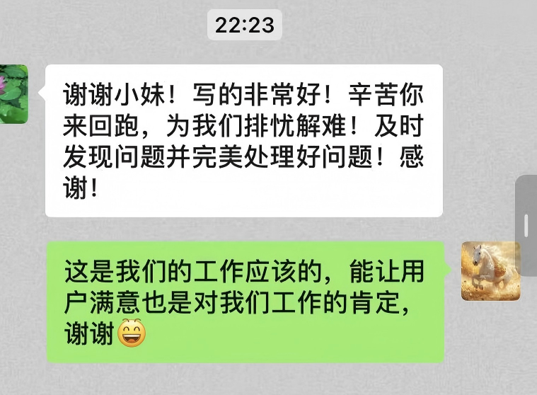 這位用戶表示,要將隨州水務(wù)員工的專業(yè)與熱情分享給身邊人,直言“你們工作時熱情的態(tài)度值得我們學(xué)習(xí)”。面對用戶的盛贊,網(wǎng)格員一句“你再表揚(yáng)我就要飄了”的俏皮回應(yīng),讓這場服務(wù)與被服務(wù)的互動更添溫情。