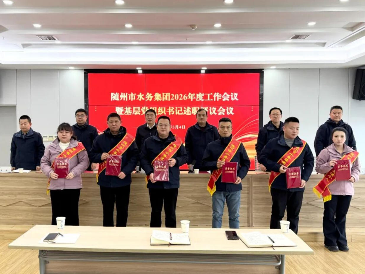 3月2日,隨州水務(wù)集團(tuán)召開2026年工作會議暨基層黨組織書記述職評議會議。會議深入學(xué)習(xí)貫徹上級精神,全面總結(jié)2025年工作,表彰先進(jìn)典型,系統(tǒng)部署2026年重點任務(wù),動員全體干部職工實干篤行、奮勇爭先,奮力開創(chuàng)集團(tuán)高質(zhì)量發(fā)展新局面。集團(tuán)黨總支書記、董事長桂維國出席會議并講話,集團(tuán)黨總支副書記、總經(jīng)理嚴(yán)賢江主持會議。
